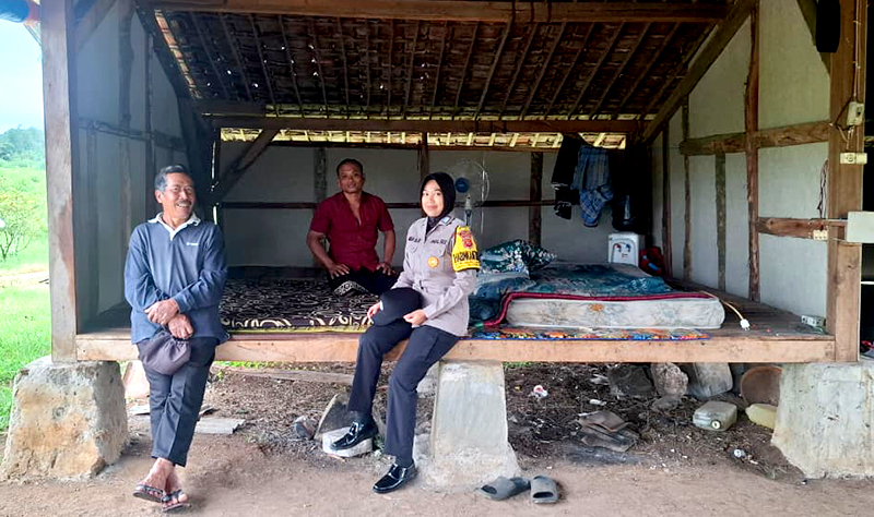 Brigadir Nia memilih momen saat warga tengah beristirahat melepas lelah usai beraktivitas di sawah untuk menjalin komunikasi yang lebih cair dan humanis.