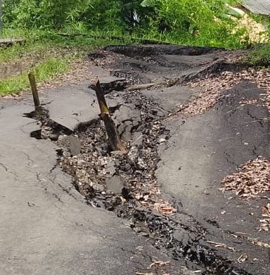 “Jalan poros yang ambles sepanjang 35 meter dengan lebar 3 meter itu, Akibatnya, jalan tersebut tidak bisa dilalui kendaraan roda dua maupun roda empat,” ujarnya.