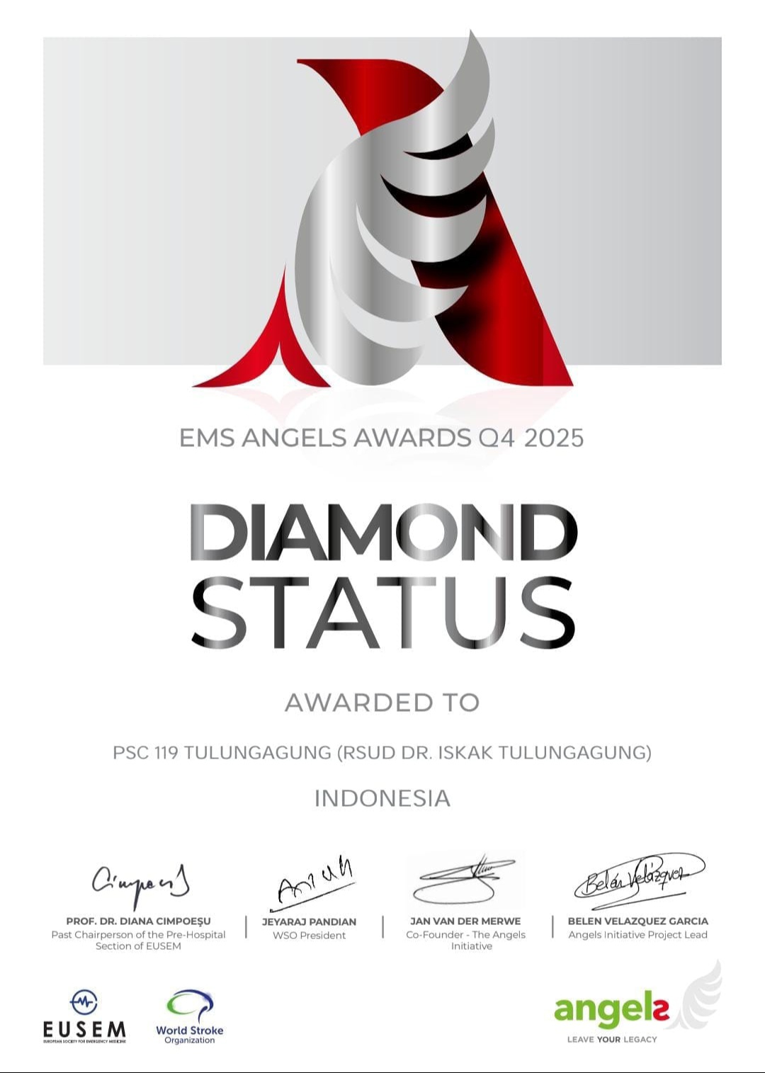Penghargaan bergengsi dari Angels Initiative, sebuah yayasan internasional yang bermitra dengan World Stroke Organization (WSO) ini merupakan pengakuan atas keunggulan penanganan pasien stroke pada fase pra-rumah sakit (prehospital). PSC 119 Tulungagung dinilai melampaui standar ketat dalam aspek kecepatan dan ketepatan penanganan darurat sebelum pasien mencapai fasilitas kesehatan.