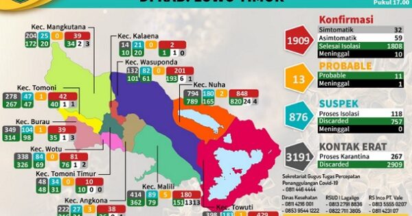 Data tersebut berdasarkan informasi dari juru Bicara Satgas Penanganan Covid-19 Kabupaten Luwu Timur, Masdin, dan update data di web http://covid19.luwutimurkab.go.id.