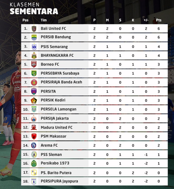 Klasemen Sementara Liga 1 usai pekan ke-2
