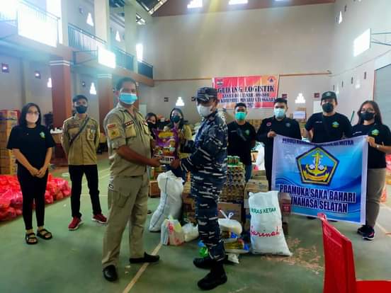 Pramuka Saka Bahari Minsel Serahkan Bantuan Korban Banjir di Minahasa Tenggara