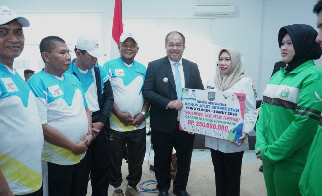 Bupati Asahan Serahkan Penghargaan ke Insan Olahraga Berprestasi PON Aceh-Sumut 2024