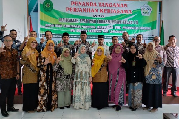 LHOKSEUMAWE, TERASKATA.COM I Dinas Pemerbayaan Perempuan, Perlindungan Anak, Pengendalian Penduduk dan Keluarga Berencana (DP3AP2KB) Kota Lhokseumawe melakukan penandatanganan perjanjian kerjasama dengan Mahkamah Syariah Lhokseumawe Kelas I B pada Kamis, (09/02/2023) di Gedung Mahkamah Syariiah Lhokseumawe Kelas I B.